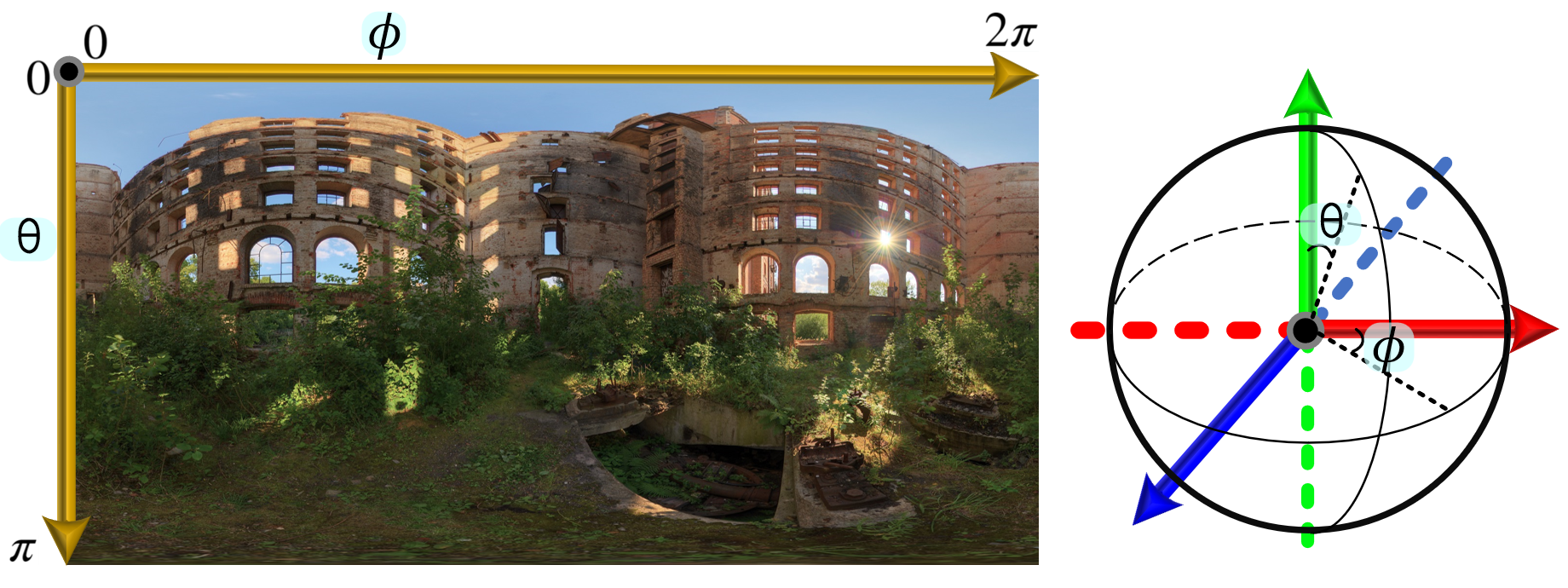 In the visualization space, the panoramic environment light is typically rotated around the y-axis. The following figure shows the result after a 90-degree rotation: